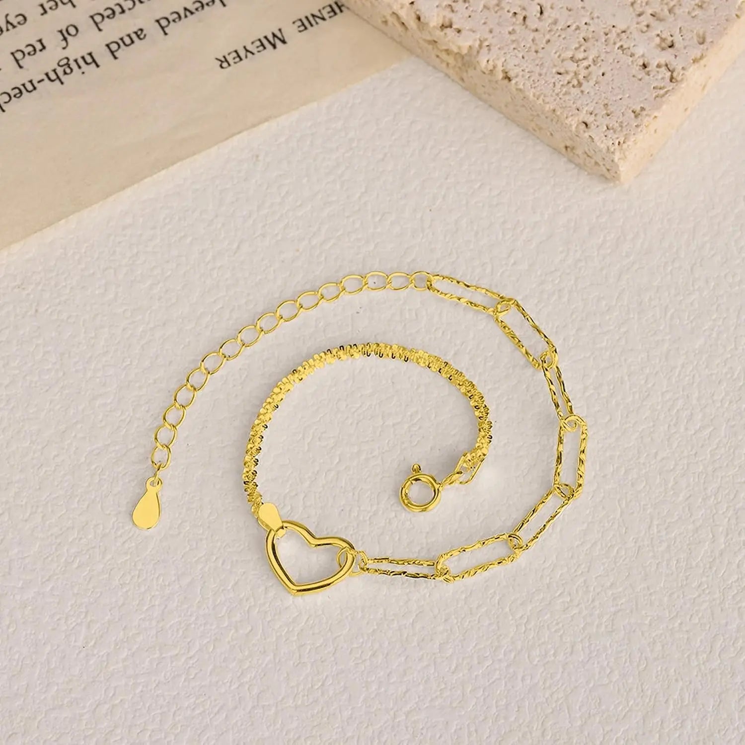 Cute Hollow Love Heart Charm Chain Bracelets for Women 14K Gold Plated Jewelry Gifts Sparkly Adjustable Splicing Link Bracelet