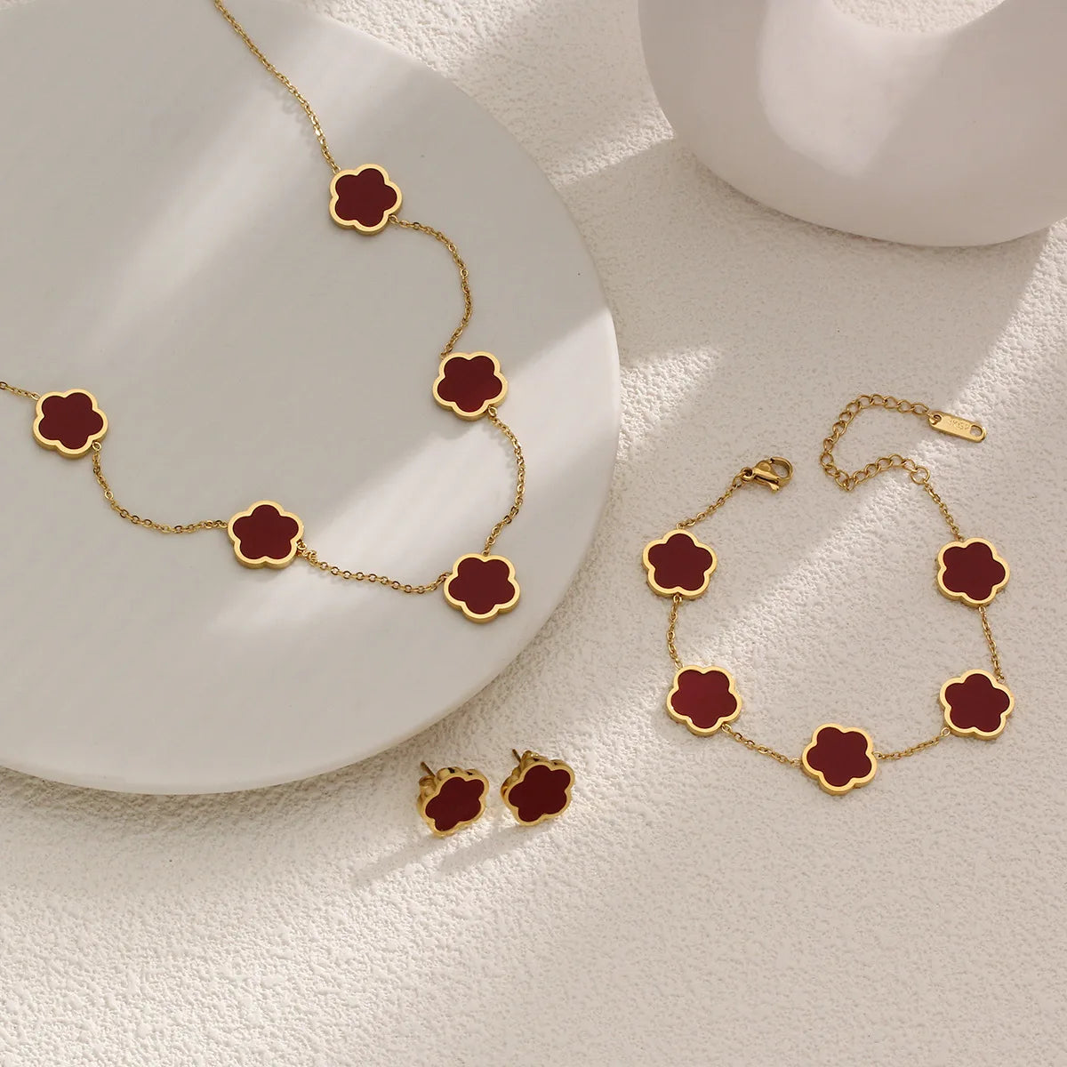 3pcs/set Stainless Steel Flower Jewelry Set Gifts Luxury Modern Fashion Charm Necklace Earrings Bracelet Set Jewelry for Women